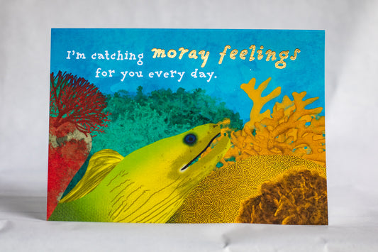 punny romance card | foiled punny leaf sheep nudibranch greeting card
