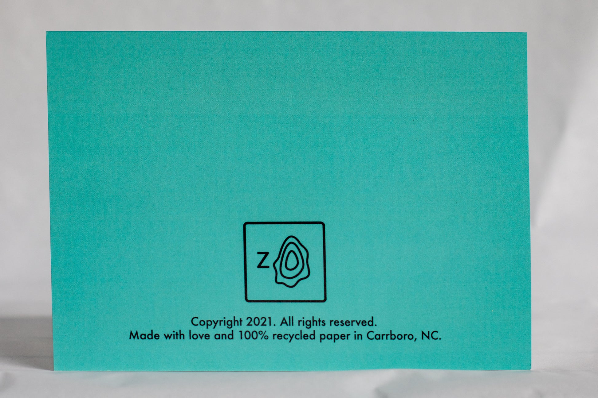 Hand-drawn digital image of a coho salmon with the phrase "co-ho-ho merry fishmas" printed to a 100% recycled greeting card. The card is blank inside, measures 7 x 5 inches, and comes with a matching A7 envelope (also 100% recycled!). To reduce plastic pollution, these cards are wrapped in biodegradable materials rather than cellophane.