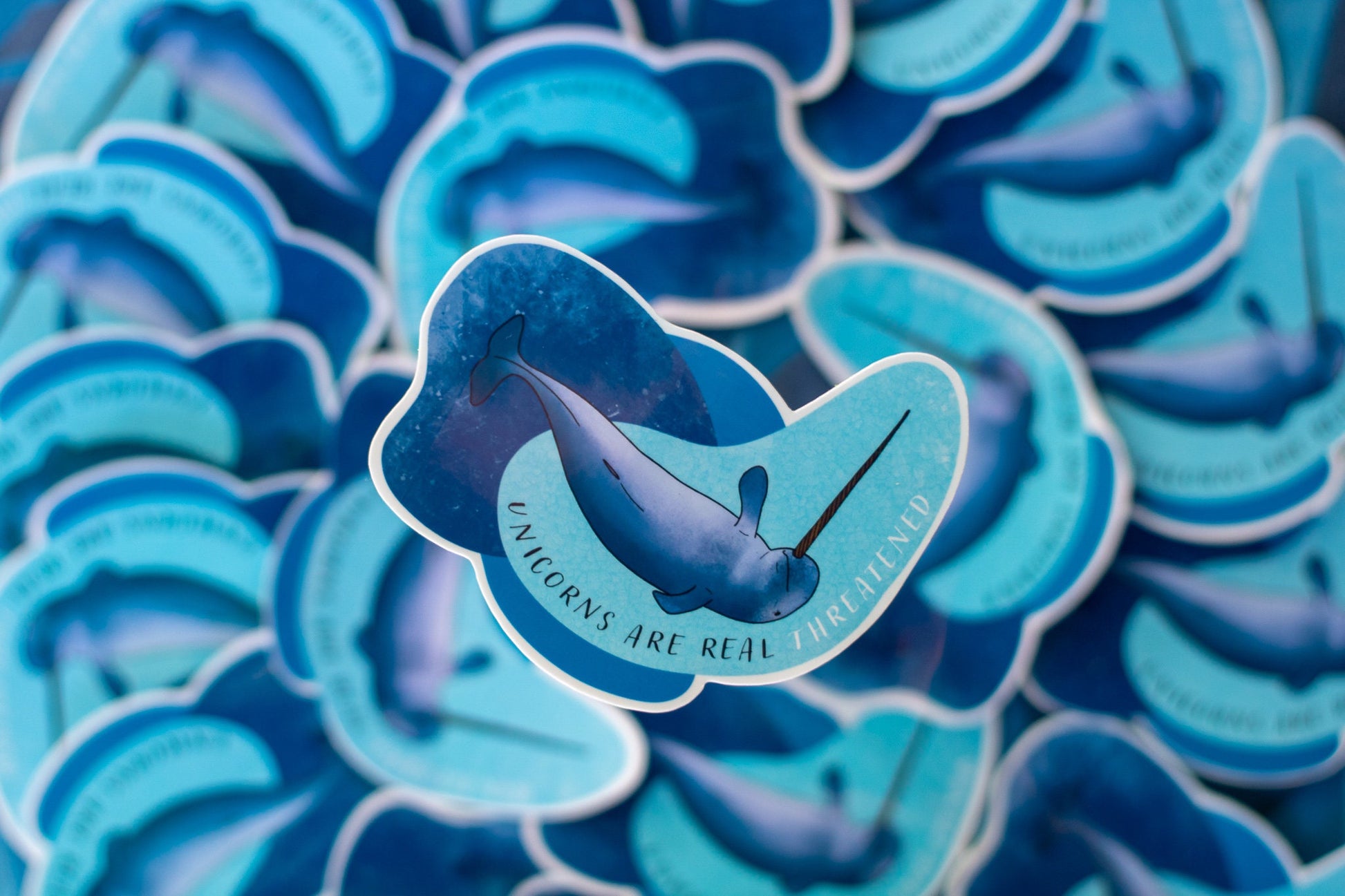 4" waterproof vinyl sticker with a narwhal drawing on it that says "unicorns are real threatened". Perfect for a gift for a friend, laptop or water bottle decal decal, bumper sticker, etc!